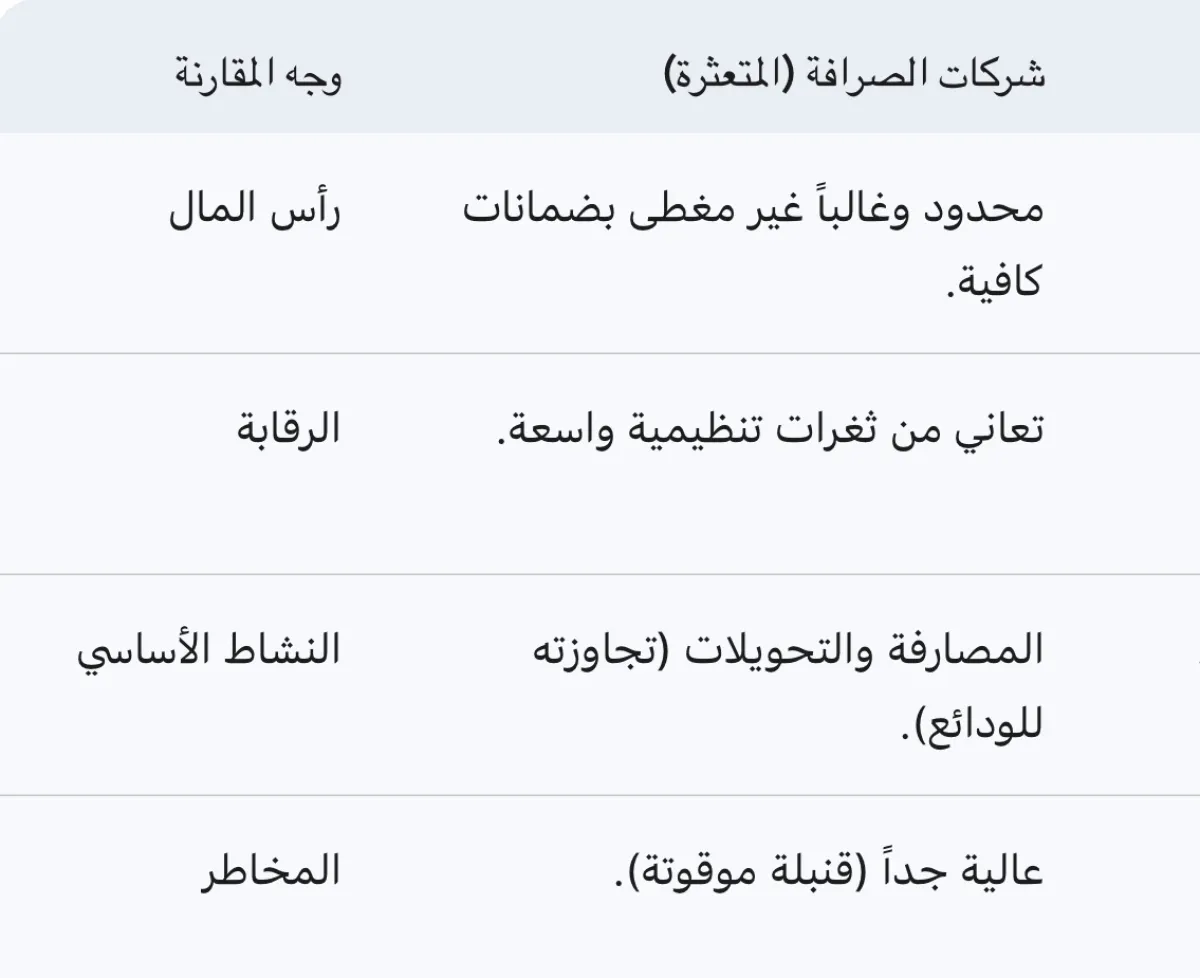 يرى مراقبون اقتصاديون أن ما يحدث هو نتيجة طبيعية لظاهرة "الصيرفة الشمولية" غير القانونية، حيث توسعت شركات الصرافة في قبول الودائع وإدارة حسابات جارية بمليارات الريالات، وهو نشاط حصري للبنوك قانوناً.